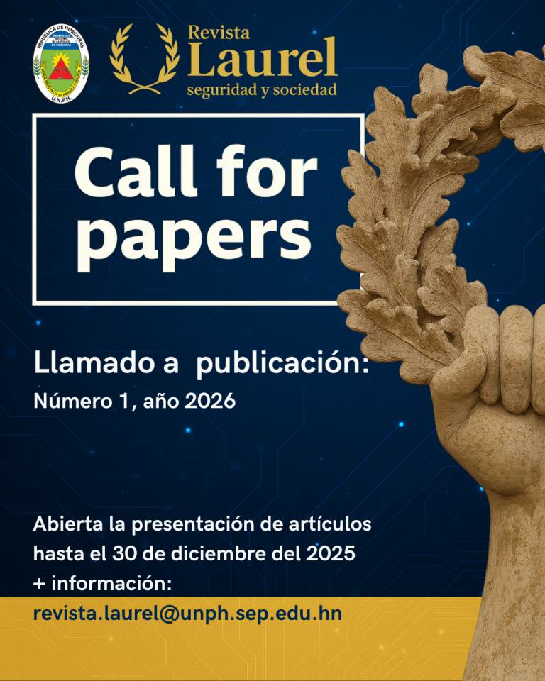 La Revista Laurel: Seguridad y sociedad, nace como una iniciativa académica de la Universidad Nacional de la Policía de Honduras (UNPH) con el objetivo de consolidarse como un espacio riguroso de reflexión, investigación y producción de conocimiento desde una perspectiva multidisciplinar en torno a: la seguridad ciudadana, desarrollo institucional policial, justicia y otros temas de carácter social.