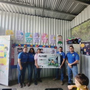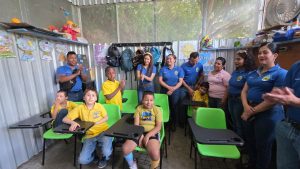 Como parte de esta iniciativa de vinculación con la comunidad, los estudiantes realizaron la entrega oficial de 10 pupitres escolares y un televisor inteligente de 43 pulgadas, contribuyendo así al mejoramiento de las condiciones educativas del centro escolar beneficiado.